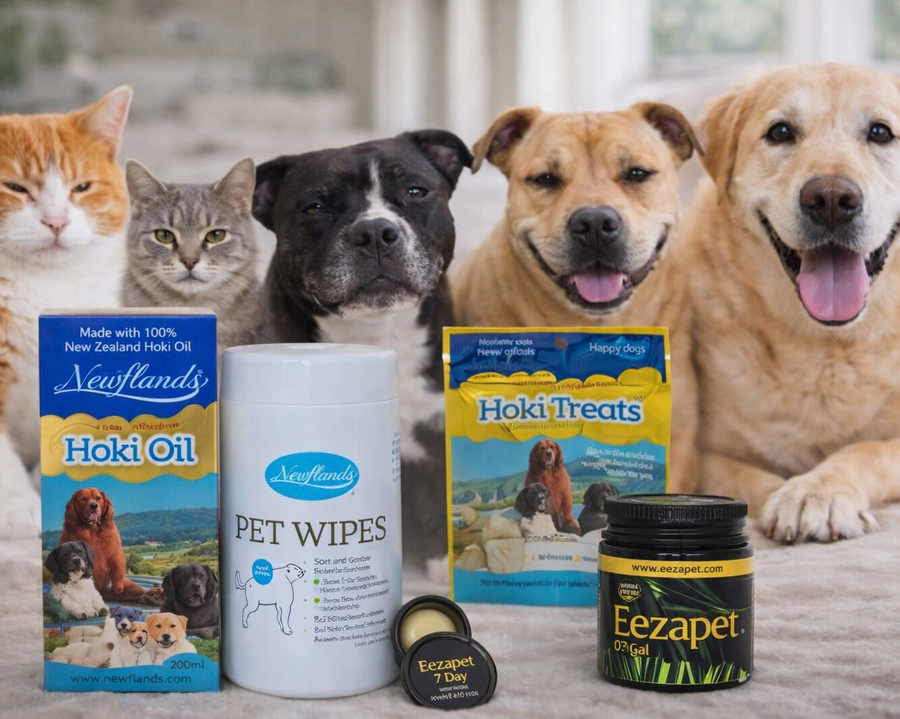 For use on small pets, cats, dogs and horses, Eezapet applied to the skin soothes, calms, moisturizes allowing skin issues to repair